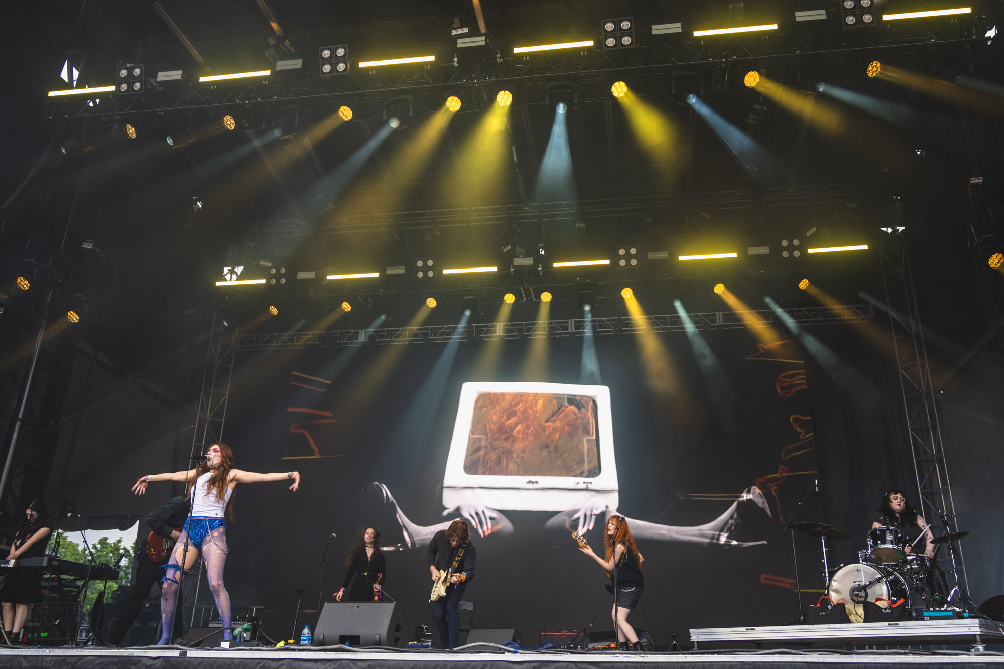 From the rip, it was an interesting day. Sloppy Jane climbed the lighting tower and went into the crowd by the end of the third song. It was curated chaos. Friko balanced aggression and vibe. Jelani Aryeh brought an off-center vocal style and great sounding band to join in, certainly a cool vibe, recommended for sampling. George Clanton fully swung the pendulum to chaos with water throws, inter-song rants on who knows what, emphatic crowd engagement including and staring contests.