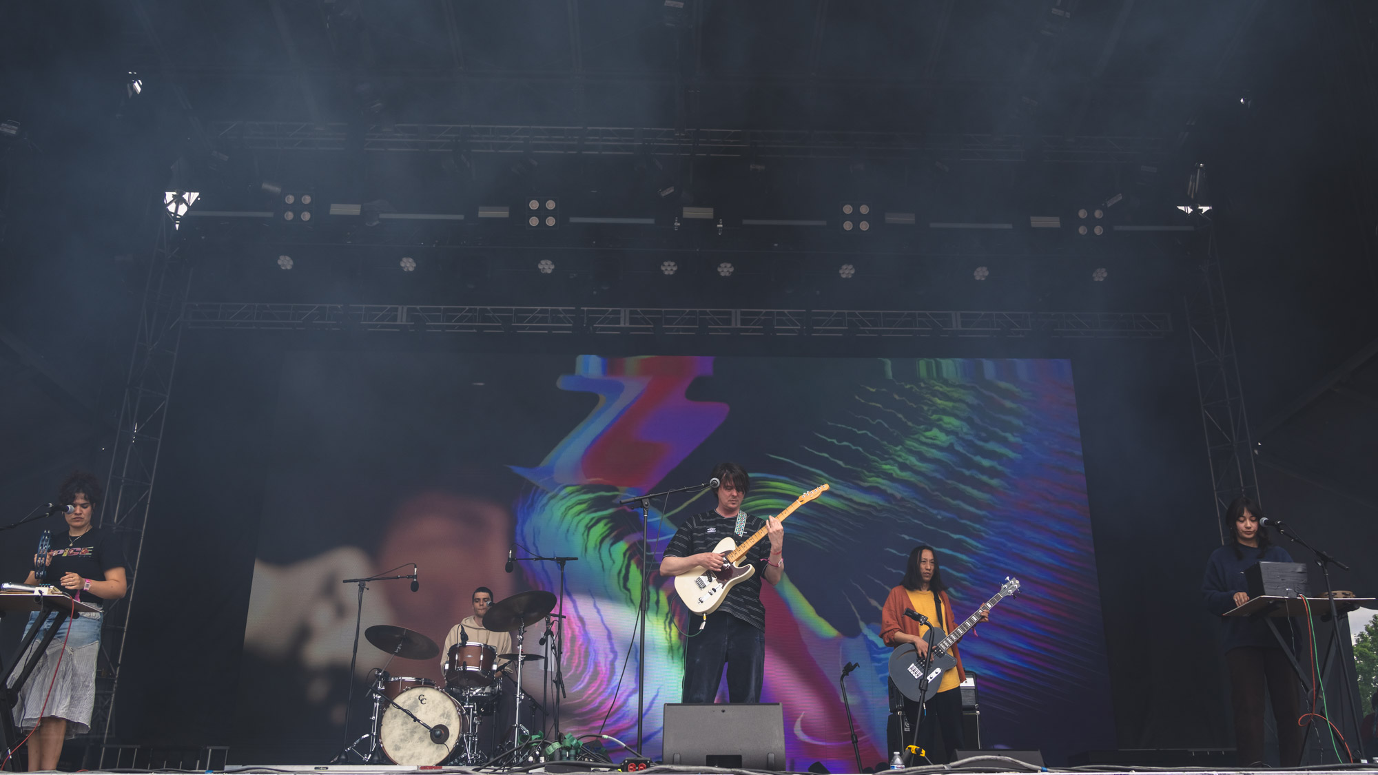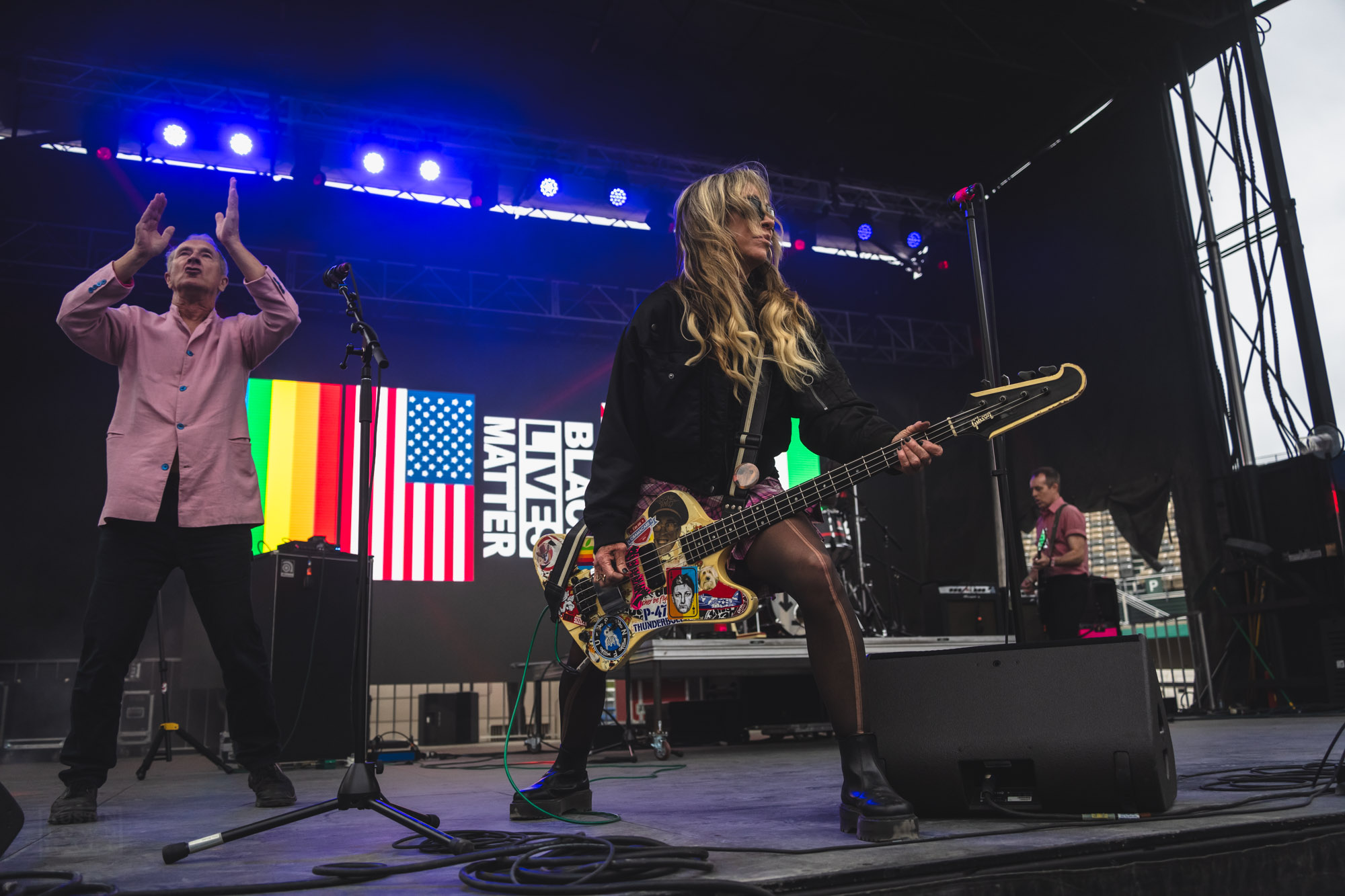 I was then sent in a peaceful place when Sasami brought out her french horn. Not often you go from jumping into a the crowd manic dance party to french horn. But that’s Kilby. Panda Bear reassured that reality could be a nice place, “Song for Ariel” being a nice highlight. IDKHOW was great shoot, but technical difficulties meant they were the only, ONLY, band to not start on time. OVLOV, new to me, crowdsurfing mayhem. Gang of Four was one original member, one early member with Ted Leo on guitar and Gail Greenwood (L7) on bass. I do love a man in uniform. Wallows brought star power. The Black Angels were a taste from home and Weezer showed everyone how to do a mega-set. Starting with some Pinkerton hits, playing all of the blue album and finishing with the rest of the hits, it was the most give-em-what-they-want set of the weekend. Sounded great.
